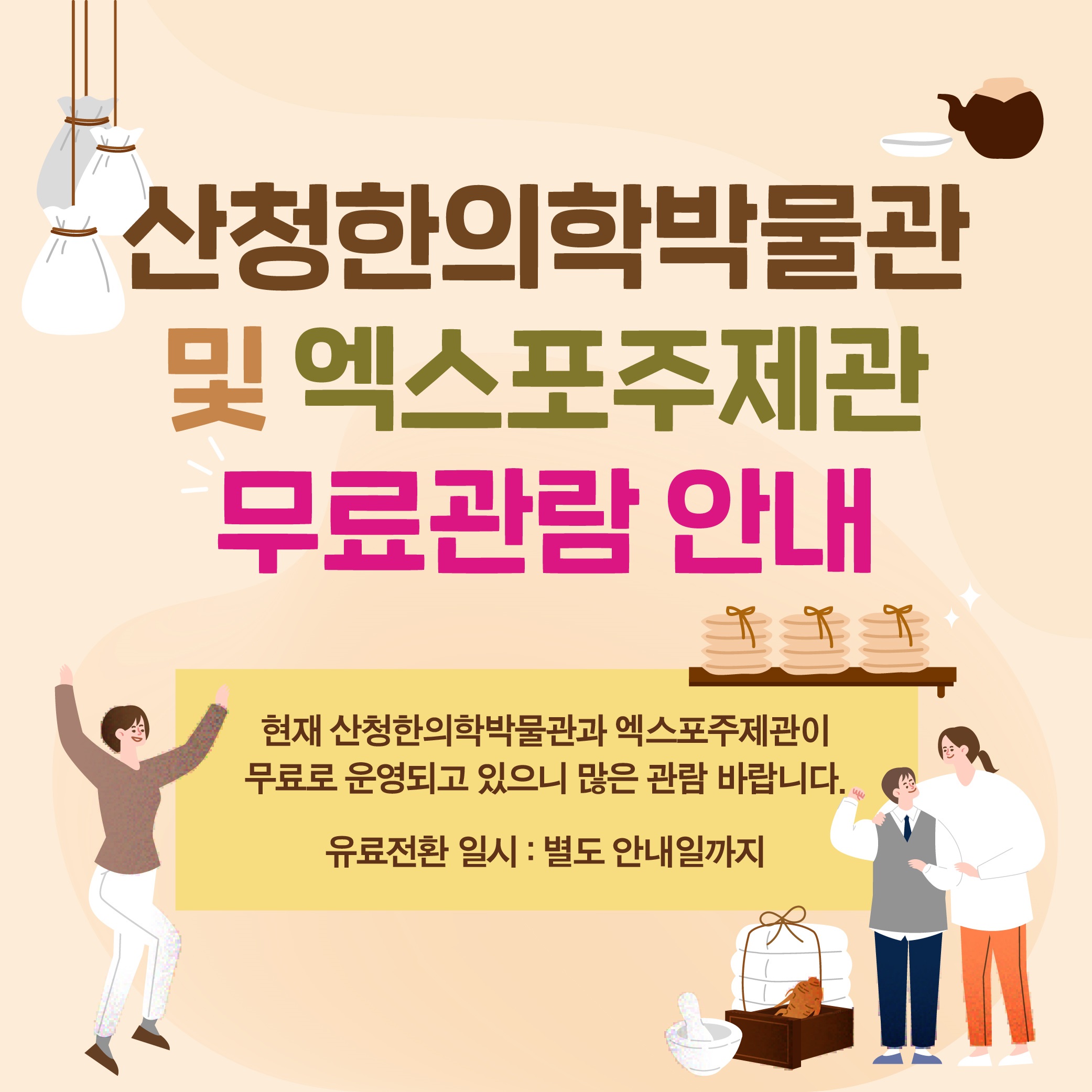 21 산청한의학박물관 및 엑스포주제관 무료관람 안내 동의보감촌 2022-06-20 산청의학박물관 엑스포주제관 무료관람안내_대지 1.jpg 1592